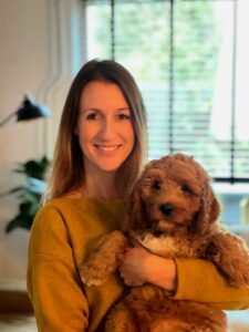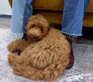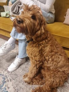 Dit is praktijkhond Jake. Jake is een labradoodle en deze honden staan erom bekend dat ze sensitief en intelligent zijn. Hierdoor voelen ze emoties bij anderen aan en dat kan ondersteunend werken bij de behandeling van depressie, angst en trauma.